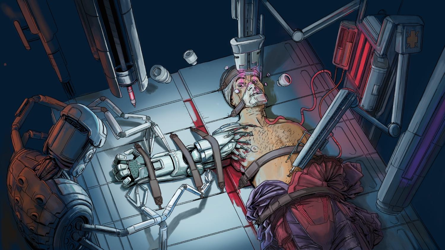 Ionner woke up abruptly. He was tied to the treatment table. Instead of his right arm there was a cybernetic limb. The pain coming from it was enormous. He was under the impression that this sensation brought him around. He tried to move. Two medical robots leaned over him instantly. After a moment, he got dizzy but the pain started going away.