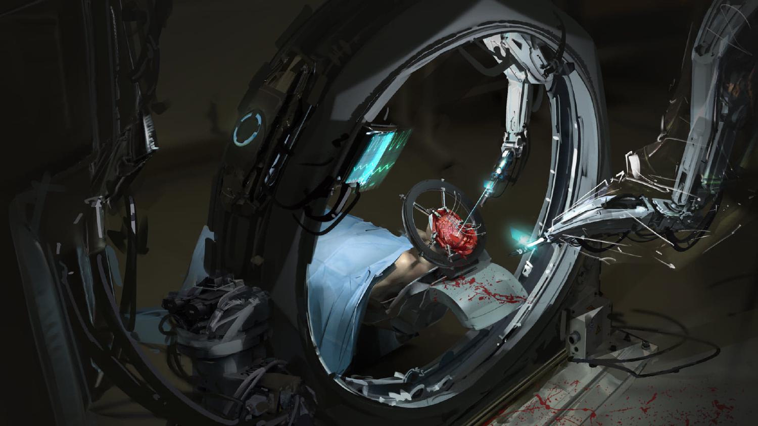 First, there was a man reciting dozens of random words and numbers from memory. A screen invisible to him was showing that everything he said was consistent with the pattern. Then the image changed and the same man was lying down immobilized and there were dozens of electrodes and wires connected to his body. The camera zoomed in on his head, or in fact, what was left of it. The upper part of the man’s face was gone and the skull ended below the eye sockets. A module of the new neural crown was hanging above it. Hundreds of microlazers in the crown were cutting out pieces of the brain, while other robotic arms, which were moving so fast that they were only noticeable when they were undergoing the process of cleaning from the bloody jelly, were reading what was cut away from the tissue.