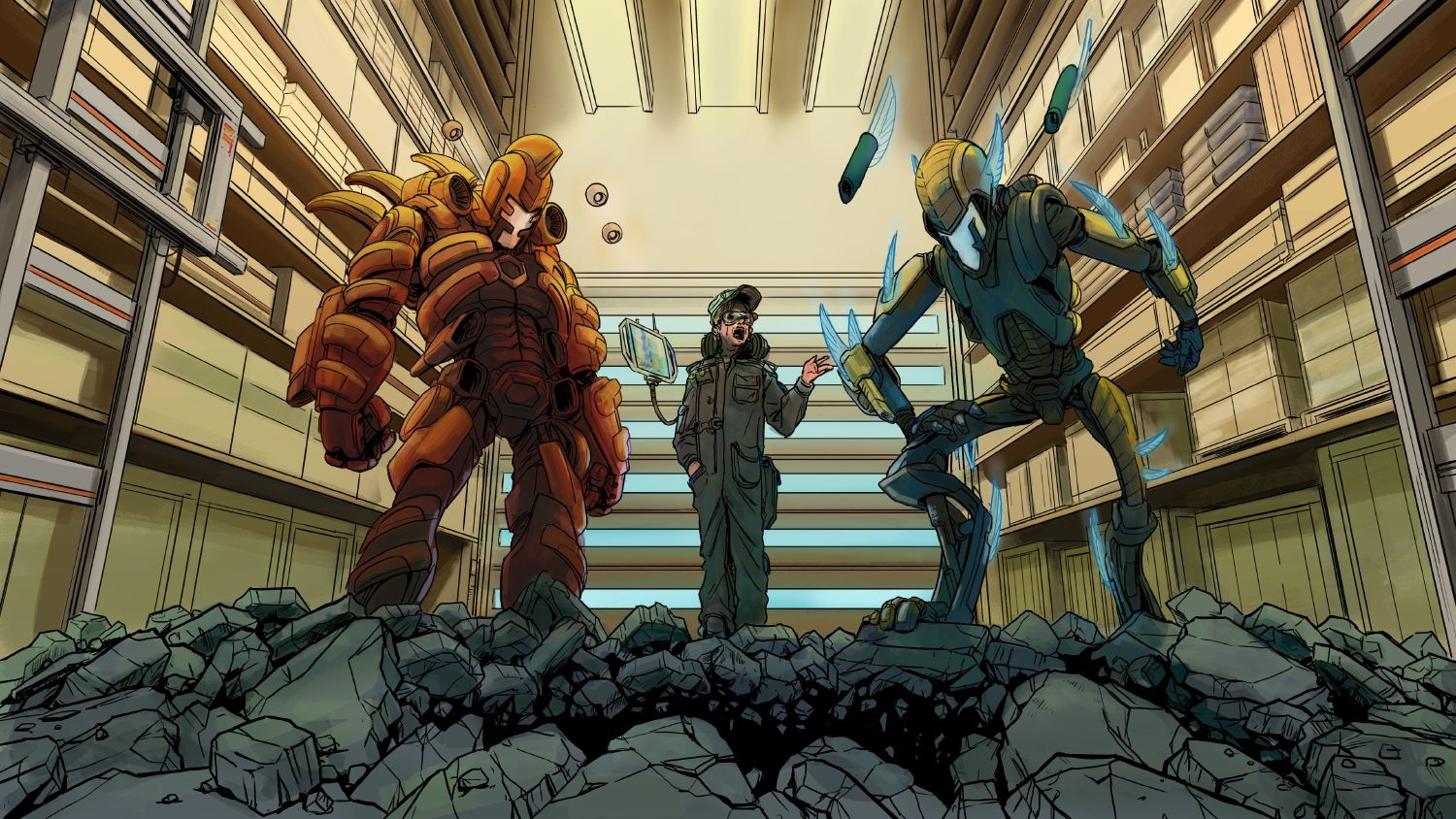 Semper Saganis and Torrento Enoeshi looked in that direction. Semper’s AlterBot scratched its chin. Luckily, the safety on kinetic launchers fitted in the forearms of the armor was on, otherwise he would have probably lost his head.