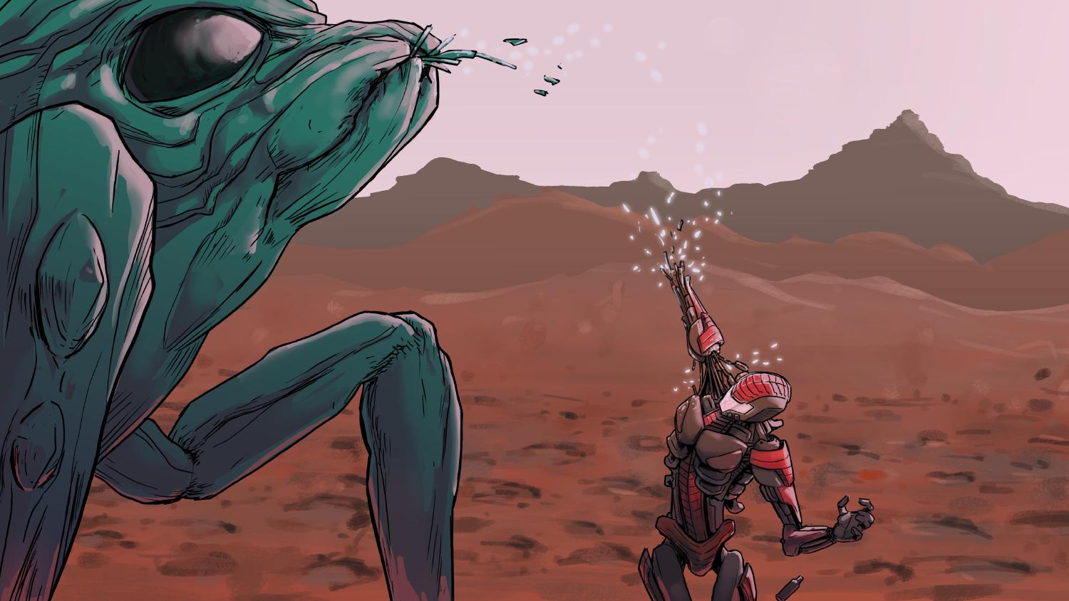 I didn’t feel pain. Strange. It was more like numbness. And an impulse, as if I was electrocuted. Suddenly, I felt my arm again. The one I’ve just lost. I could feel a button pulsing under my thumb. It dawned on me. I knew exactly what I had to do.